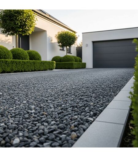 Description du caillou concassé noir/gris Couleur des gravillons : Les graviers sont tous de coloris différents, ils sont issus de roches en pierre naturelle. Les variantes de couleur vont de variantes de gris jusqu'au noir. L'ambiance générale dégagée par ce gravier tourne autour du gris anthracite et permet d'offrir un vrai contraste près d'un mur blanc par exemple. Forme des gravillons : ce gravier noir est concassé, ce qui signifie que ses côtés sont anguleux, rustiques . Il trouve, de ce fait, parfaitement sa place dans les alvéoles d'un stabilisateur de graviers. Dimensions du big bag : 110 x 110 x 75 cm (L x l x H) Usages du gravillon calcaire noir 6/14 Gravier particulièrement bien adapté aux allées carrossables , après la pose d'un géotextile pour limiter la repousse des mauvaises herbes (avec ou sans stabilisateur de graviers) Zone de parking : recommandé avec un support de dalles alvéolées Couverture de sols pour jardins japonais par exemple Parterres déco en jouant les ...