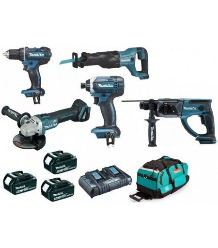 Makita - Pack premium de 5 machines (Perceuse DDF482 - Meuleuse DGA504 - Perforateur DHR202 - Visseuse à chocs DTD152 - Scie) - 18V - 5Ah