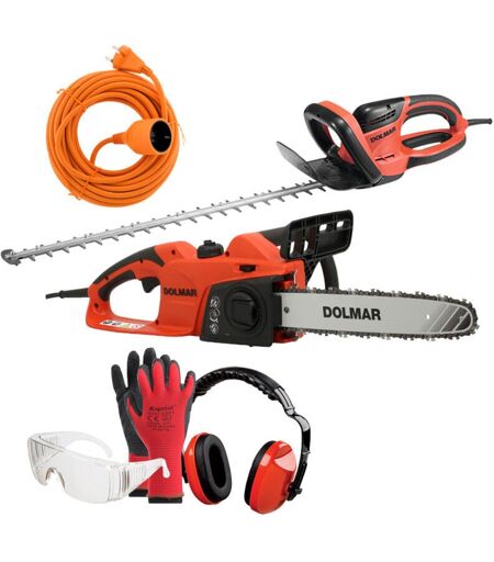 PACK - DOLMAR Taille-Haie Électrique 670W 55cm HT5510 + Tronçonneuse 1800W 40cm ES43TLC + Rallonge 20m + Équipements Protection