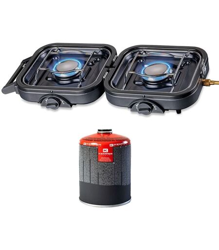 Kemper - Réchaud gaz 2 feux 4600W pliable + Cartouche de gaz