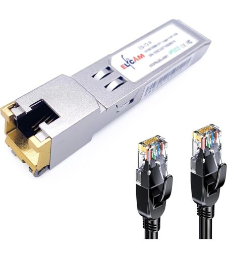 10Gb SFP+ en RJ45 Connecteur pour Freebox Ultra avec 80m Noir Cat8 Câble Réseau,Module émetteur-récepteur RJ45 10GBase-T SFP + cuivre, 10Go SFP+ pour Cisco SFP-10G-T-S, Ubiquiti, D-Link, Supermicro, Netgear, Mikrotik, Freebox Ultra et Delta, et open switch. Compatibilité universelle : compatible avec Freebox Ultra et Delta, Cisco SFP-10G-TS , Ubiquiti UF-RJ45-10G, Netgear AXM765, D-Link DEM-440XT, Supermicro, Linksys et autres commutateurs ouverts / open switch. Débit de données : 10 Go, interface : connecteur RJ45 ; portée : jusqu'à 30m avec un câble ethernet Cat7/ Cat8. Plug and play, enfichable à chaud. Tournez l'anneau de verrouillage vers le bas à un angle de 90 degrés pour le déverrouiller et retirez l'émetteur-récepteur de l'interrupteur. SERVICE APRÈS-VENTE DISPONIBLE EN FRANCE. Garantie : 3 ans. Assistance technique assurée par des conseillers francophones, experts en produits ELFCAM. ...