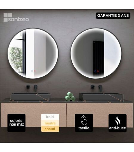 Ledimex - Miroir Salle de Bains Lumineux népal Anti-Buée et Éclairage Périmétral Triled Tactile On/Off Ø70 Noir Mat by sanizéo