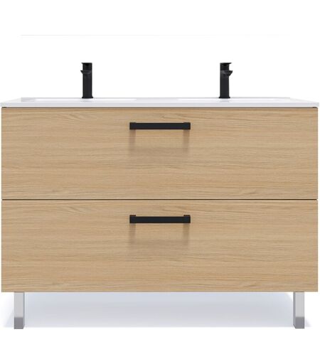 HOMIFAB Meuble de salle de bain suspendu avec pieds double vasque intégrée 120cm 2 tiroirs Chêne clair - Chelsea