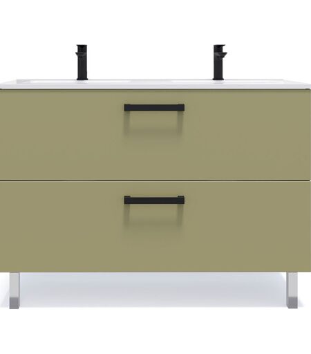 Homifab - Meuble de salle de bain suspendu avec pieds double vasque intégrée 120cm 2 tiroirs Vert olive - Chelsea