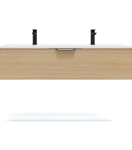 HOMIFAB Meuble de salle de bain suspendu double vasque intégrée 120cm 1 tiroir Chêne clair - Venice
