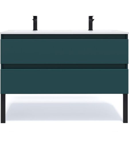 Homifab - Meuble de salle de bain suspendu double vasque intégrée 120cm 2 tiroirs Bleu - Hudson