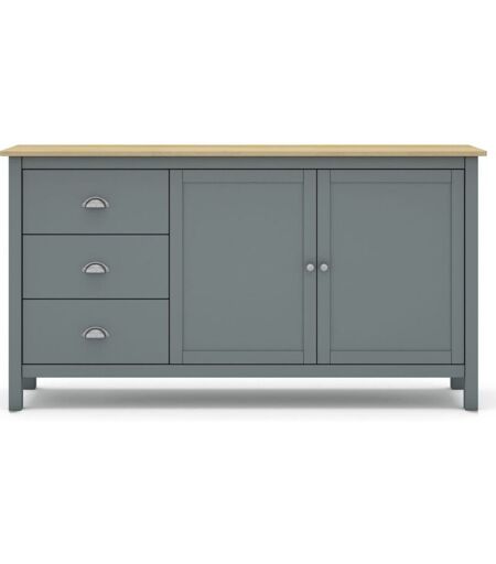 Homifab - Buffet 2 portes 3 tiroirs en bois massif vert kaki 150 cm- Macha