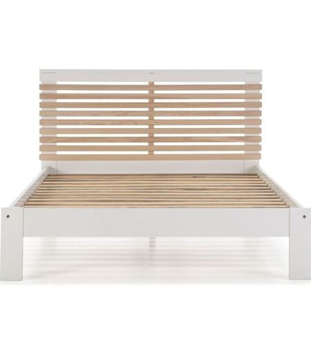 Homifab - Lit adulte 140x190 cm avec tête de lit à lattes en bois clair / blanc - Lucy