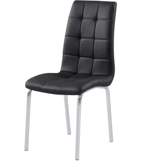 La chaise EMMA NOIR au style moderne et élégant s'intègrera parfaitement dans tous les intérieurs contemporains. Ces chaises avec pieds en métal chrome apporteront un réel cachet à votre intérieur. Ajoutez à cela un revêtement de similicuir noir et vous êtes assurés d'être assis confortablement tout au long du repas. La chaise EMMA avec son dossier capitonné donnera un style supplémentaire dans votre salle à manger. Vendu par lot de 6. ...