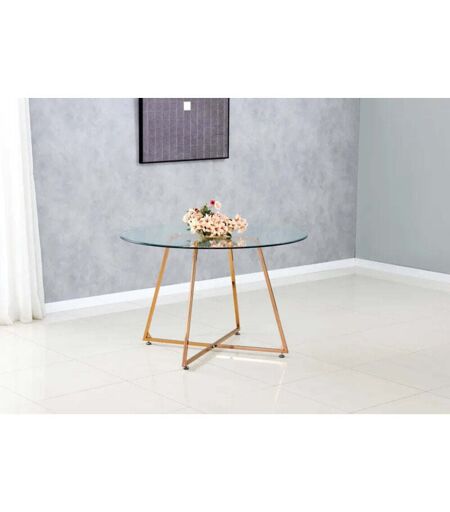 Homy France - Table Repas ronde 4 personnes heloise Gold Rose verre effet Marbre Blanc