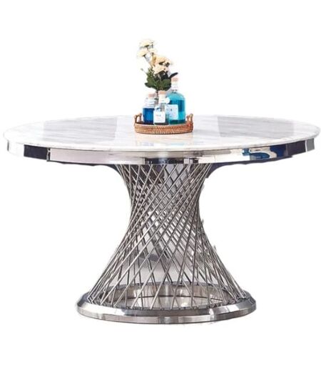 Homy France - Table Repas ronde deluxe Chrome verre effet Marbre Blanc D130 cm