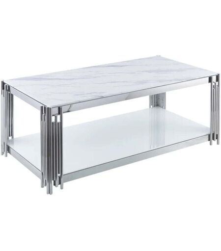 HOMY FRANCE Table Basse FLUTE Chrome verre Transparent 120x60x45 cm