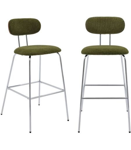 SWEEEK 2 tabourets de bar décor bois courbé teinté noyer et tissu déperlant kaki. pieds métal chromé - L 44 x P 51 x H 103cm - Erin