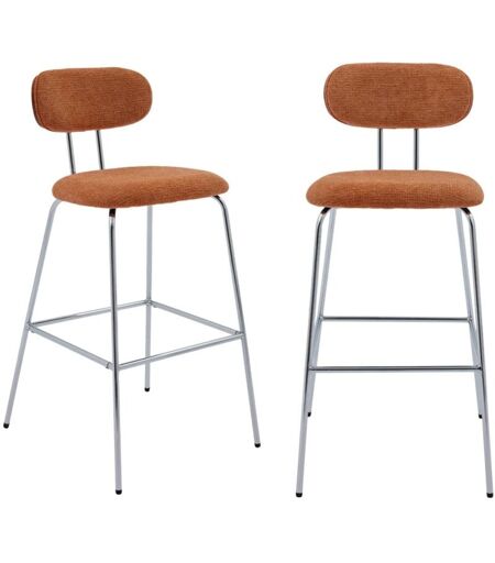SWEEEK 2 tabourets de bar décor bois courbé teinté noyer et tissu déperlant terracotta. pieds métal chromé - L 44 x P 51 x H 103cm - Erin