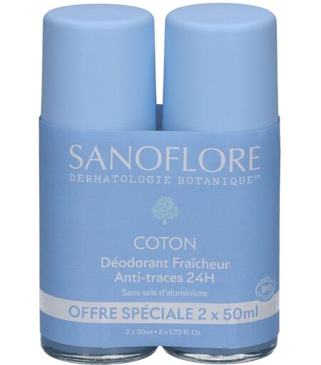 SANOFLORE Déodorant Roll-On 24h Coton x2 Rouleau 100 ml