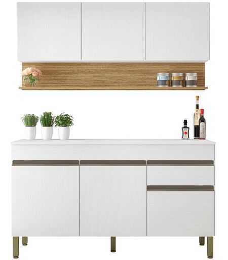 Cuisine Equipée Kitchenette 6 Portes et 1 Tiroir Imitation Chêne et Blanc Structuré Largeur 150 cm Longueur 150 cm Profondeur 53.3 cm Hauteur : environ 200 cm, selon votre choix. - Dimensions du meuble bas : Largeur 150 cm Hauteur 86 cm Profondeur 53.3 cm - Dimensions du meuble haut : Largeur 150 cm Hauteur 67 cm Profondeur 28.6 cm Aménagement : - 1 Tiroir - 9 Niches - 1 Tablette - 5 Pieds Réglables - Vous fixez la partire haute où vous le souhaitez. - 1 Meuble Bas sur pieds - 1 Meuble Haut à fixer au mur. Caractéristiques techniques : - Bois certifiés FSC, issus de forêts gérées durablement. - Structure en panneaux de particules de bois épaisseur 15 mm - Arrière et fonds de tiroirs en panneaux de fibres de bois (MDF) épaisseur 3 mm - Finition Coloris Imitation Chêne et Blanc Structuré - 5 Pieds Plastique - Poignées Plastique - Glissières de tiroirs métalliques - Charnières de portes métalliques - Garantie 2 ans - Poids total net : 70 kg. Dimensions utiles : - 3 Niches hautes fermées ...
