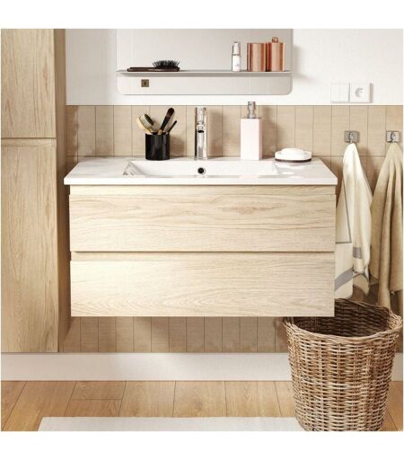 MOB-IN Ensemble meuble simple vasque décor chêne 80cm + vasque + robinet