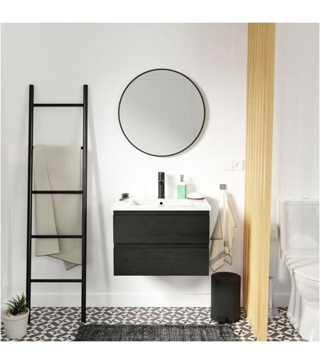MOB-IN Ensemble meuble simple vasque décor chêne carbone 60cm + vasque + robinet + miroir