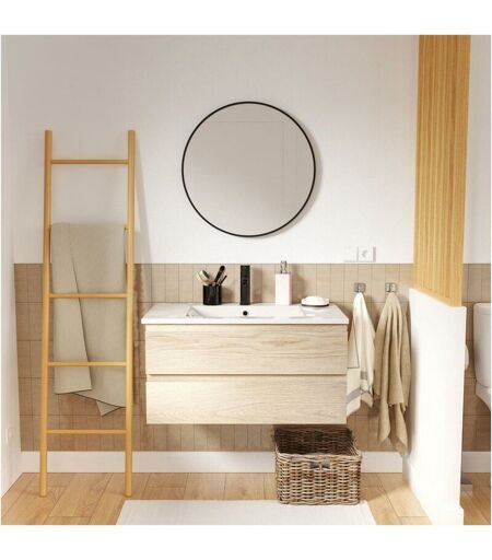 MOB-IN Ensemble meuble simple vasque décor chêne 80cm + vasque + miroir + robinet
