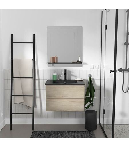 MOB-IN Ensemble meuble simple vasque 60cm décor chêne + vasque noire + robinet + miroir