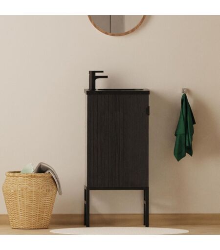 MOB-IN Ensemble meuble lave-mains chêne carbone + robinet