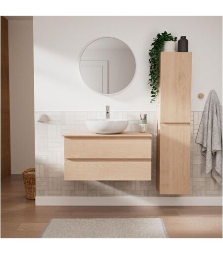 Points forts : MDF + mélamine décor chêne/Plan eau résistant/Facile à monter Meuble SORRENTO 80CM décor chêne : un design naturel et fonctionnel Le meuble sous vasque SORRENTO 80CM décor chêne allie élégance et praticité pour un aménagement moderne et harmonieux de votre salle de bain. Conçu en MDF mélaminé, il offre un aspect chaleureux et une grande résistance à l'humidité grâce à son plan water resistant. Ses dimensions L80 x H45 x P46 cm permettent une installation compacte tout en optimisant l'espace de rangement. Vasque salle de bain SACHA : un design raffiné et intemporel La vasque SACHA, avec ses lignes rondes et délicates, apporte une touche d'élégance à votre salle de bain. Fabriquée en céramique, elle résiste aux chocs et à l'humidité tout en offrant un entretien facile. Avec un diamètre de 42 cm et une hauteur de 13 cm, elle s'adapte parfaitement au meuble SORRENTO pour un confort optimal au quotidien. Son trou d'évacuation standard (Ø 45 mm) facilite son installation avec ...
