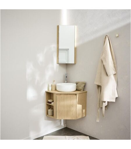 Mob-in - Ensemble meuble sous vasque d'angle sorrento + vasque + robinet + Armoire de toilette d'angle
