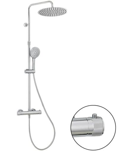 Mob-in - Colonne de douche thermostatique en inox avec tête ronde et poignées guillochées
