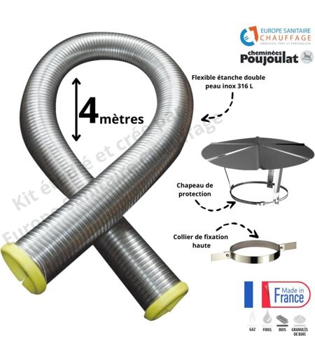 Poujoulat - Kit tubage flexible double peau inox diamètre 100 + collier de fixation haute + chapeau Longueur du conduit 4 mètres