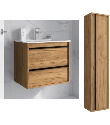 Salgar - Meuble de salle de bain Dimensions 60 cm Couleur Chêne africain Miroir Sans miroir Colonne de rangement Avec colonne
