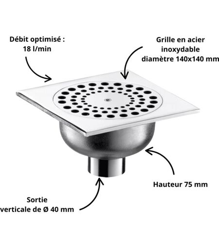 Siphon de sol pour sol dur à platine 140 X 140mm DELABIE est conçu pour offrir un drainage optimal tout en garantissant une esthétique élégante grâce à sa grille en acier inoxydable poli. Ce produit assure un excellent débit d'évacuation, renforçant son efficacité dans divers environnements. Utilisation : Conçu pour des sols durs tels que carrelés ou béton brut. Débit : Capable d'évacuer jusqu'à 18 litres par minute . Garde d'eau : Établie à 18 mm pour une protection optimale contre les odeurs. Matériaux : Fabriqué en laiton, avec une grille en acier inoxydable poli, des vis en acier inoxydable et une cloche en PVC. Sortie : Verticale de Ø 40 mm , avec possibilité de coude pour sortie horizontale. Dimensions : Platine de 140 x 140 mm avec une hauteur de 75 mm . Lors de la réception de votre commande, il est impératif de vérifier l'état de la marchandise en présence du livreur. En cas d'anomalie, émettez des réserves précises sur le bon de livraison ou refusez la marchandise. Sans ...