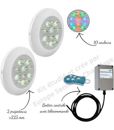 Weltico - Kit 2 projecteurs couleur Easyled Evo + télécommande avec boitier pour piscine Béton, Panneau, Liner,Coque