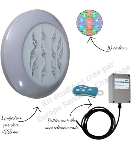Weltico - Projecteur couleur Easyled Evo gris clair + télécommande avec boitier pour piscine Béton, Panneau, Liner,Coque