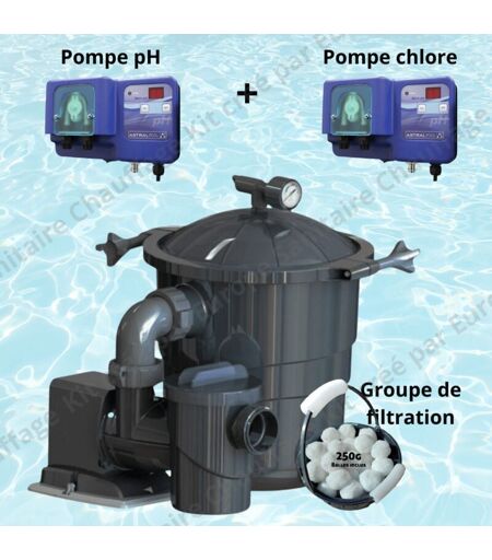 Pack Groupe de filtration Filter Max + Pompe chlore + Pompe PH Volume max du bassin 30 m³ Ce pack complet optimise le traitement de l’eau de votre piscine en alliant performance, automatisation et facilité d’installation. Il garantit une eau claire, saine et équilibrée, tout en réduisant la consommation d’énergie et les opérations de maintenance. Groupe de filtration Filtermax Poolex : système compact et silencieux à balles filtrantes offrant une finesse de filtration de 3 microns, adapté aux piscines jusqu’à 75 m³. Il intègre une pompe ajustable de 80 à 400 W avec 4 vitesses, sans besoin de contre-lavage. Pompe de régulation automatique de Chlore : module équipé d’une sonde redox et d’une pompe doseuse péristaltique. Il ajuste automatiquement le niveau de chlore pour une eau désinfectée, avec un débit de 1,6 l/h, pour bassin jusqu’à 80 m³. Pompe de régulation automatique de pH : régulateur performant avec pompe péristaltique, maintenant un pH stable entre 7,2 et 7,6. Il améliore ...