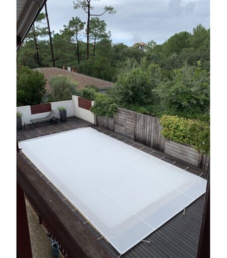 Bâches-piscines.com - Bâche Hivernage Filet Blanc 350 g/m² Traitée Anti-UV 9,60 x 4,60 m pour Piscine Max. 9 x 4 m - Fabrication Française Direct