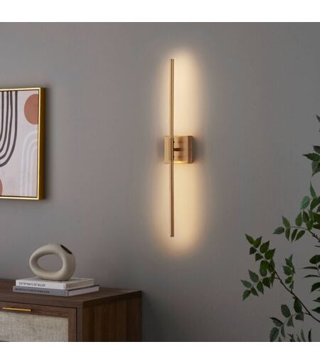 Avec sa finition dorée raffinée, Collins apporte une note de luxe discret à votre intérieur. Grâce à son profil mince, il s'intègre parfaitement dans divers environnements sans dominer l'espace. Son éclairage LED blanc chaud, projeté de manière indirecte, diffuse une atmosphère apaisante et accueillante, idéale pour sublimer vos pièces avec élégance. Simple à installer, Collins combine à merveille esthétisme et fonctionnalité. ) Assemblage simple requis ( ...