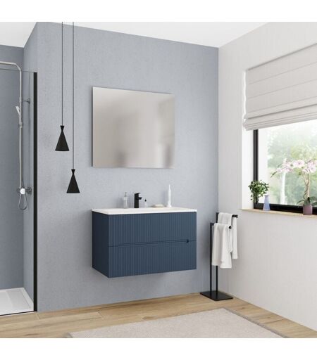 Ceramia - 80cm, meuble de salle de bain assemblé, certifié fsc, bleu foncé ( 5DB80)