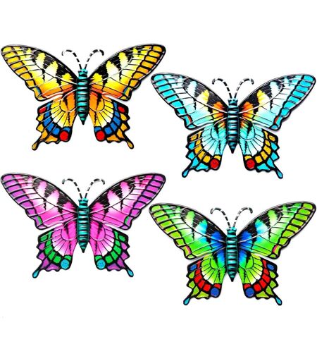 Sculptures de papillons vivantes : ces décorations suspendues en forme de papillon sont magnifiquement conçues dans des couleurs vives (rouge, jaune, vert, bleu) et présentent des détails réalistes qui ajouteront un charme vivant et adorable à votre décoration d'intérieur et rehausseront n'importe quel intérieur ou extérieur.Dimensions compactes et élégantes : mesurant 12 x 18,5 cm / 4,7 x 7,2 pouces, cet art mural en métal offre une taille idéale pour un placement polyvalent sur les murs, les clôtures ou les arbres, créant un point focal impressionnant dans le jardin ou le salon.Construction en fer durable : fabriquées en fer inoxydable de haute qualité, ces décorations de jardin résistent à la décoloration, à la déformation et à la corrosion, apportant une beauté durable à la décoration extérieure et aux présentoirs intérieurs s.Design de suspension sans effort : avec des crochets intégrés à l'arrière, nos ornements suspendus permettent une installation rapide avec un seul marteau et un clou, ce qui les rend faciles à monter comme décoration murale ou élément de jardin.Décoration polyvalente et idée cadeau : parfaites pour les jardins, les terrasses ou les tables à manger, ces sculptures de papillons servent de charmants cadeaux à la maison pour les proches, les collègues ou les occasions spéciales telles que les anniversaires ou les vacances. ...