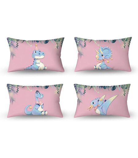 KALANKA-30x50cm Lot de 4 Mignonne Dessin animé Animal Housse de Coussin Dinosauro Floreale Pianta Verde Chiaro Doux Court Peluche Carré Bébé Taie d'oreiller Enfant Fête Sofa Chambre Canapé Lit