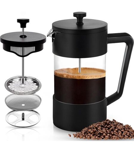 Kalanka-Cafetière À Piston, French Press 1000 Ml (5 Tasses),Carafe Française Pour Café Filtre,Verre Borosilicate Résistant À La Chaleur, Triple Filtres En Acier Inoxydable,Cafetière/Théière (Noir)
