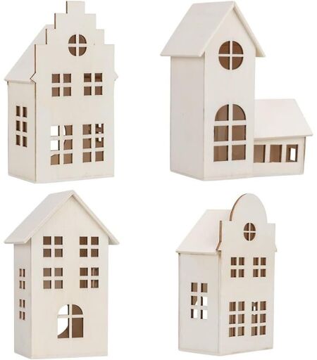 4 maisons en bois avec ouverture (Ø 3,5 cm) ¿ Idéal pour une bougie chauffe-plat LED4 tailles différentes 13 cm x 7,5 cm x 5 cm 13 cm x 7,5 cm x 5 cm 13,5 cm x 8,3 cm x 6 cm 13,6 cm x 10,7 cm x 6,5 cmMatériau contreplaqué de peuplierRemarque utilisez uniquement des ampoules électriques.La livraison depuis la France est prévue dans 5 jours ouvrés, n'hésitez pas à passer votre commande ...