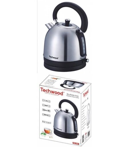 Techwood Bouilloire Inox 1,8L GRISE INOX Sans Fil 1,8 Litre 2200W Arre?t automatique INOX GRISEe