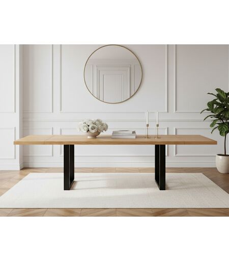 Table à manger pieds carrés extensible AWANI Chêne massif et métal 160 à 240 cm BOBOCHIC 160 à 240 cm