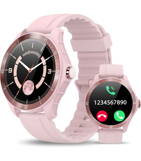 ¿Bluetooth 5.3 Appels et Notifications¿La smartwatch dispose d'un microphone et d'un haut-parleur hi-fi intégrés qui vous permettent de passer/recevoir des appels directement. La smartwatch peut également recevoir des SMS et des messages d'application (WhatsApp, Facebook, TikTok, etc.) de manière synchronisée, de sorte que vous ne manquiez aucune information importante pendant l'entraînement ou la conduite automobile. (1.Veuillez activer les notifications et les appels dans ""VeryFit"" ; 2.La montre ne peut pas répondre aux messages).,¿Assistant Vocal Alexa¿La montre intelligente pour femme dispose d'Alexa intégré pour vous aider à vérifier la météo/les données d'entraînement/les données de santé, à régler l'alarme. Vous pouvez également contrôler par la voix les appareils smart home compatibles avec Alexa (comme les haut-parleurs, les lumières, etc.). La smartwatch Yoever vous simplifie la vie. *NOTE : Alexa ne prend pas en charge les commandes d'appel.,¿Suivi Complet de la Santé¿La smartwatch pour femmes utilise des capteurs avancés pour un suivi précis. Elle peut mesurer vos données de santé (SpO2, fréquence cardiaque, stress) pendant 24 heures en continu. En outre, cette montre pour femmes surveille automatiquement votre sommeil et fournit une analyse complète de la qualité du sommeil pour vous aider à mieux dormir. Vous pouvez consulter toutes ces données sur VeryFit pour voir vos analyses de forme.,¿100 Modes sportifs et IP68 Waterproof¿Cette montre de fitness pour femmes prend en charge 100 modes sportifs, tels que la course à pied, le cyclisme, la natation, le football, etc.(Modifier dans l'application). (Modifier et ajouter dans l'application). Elle peut enregistrer avec précision vos activités et suivre diverses données en temps réel telles que les calories, la distance et les pas pour vous aider à vous entraîner scientifiquement. Cette montre de sport pour femme est étanche selon la norme IP68 et peut être portée pour nager ou se laver les mains (il n'est pas recommandé de la porter dans l'eau chaude ou l'eau de mer).,¿Écran HD de 1,38 Pouce et 100 Interfaces de Composition¿La smartwatch est équipée d'un écran tactile haute résolution pour une expérience visuelle de premier ordre. La luminosité peut être réglée sur cinq niveaux pour afficher clairement les données, même en cas de forte luminosité. Vous pouvez choisir parmi 100 cadrans différents dans l'application ""Veryfit"". Vous pouvez même utiliser votre propre photo comme cadran pour vous démarquer.,¿Longue durée de vie de la batterie¿La smartwatch pour femmes est équipée d'une grande batterie de 300mAh, avec seulement 2 heures de temps de charge, vous pouvez l'utiliser pendant 5 à 8 jours, ce qui la rend idéale pour les voyages d'affaires ou les voyages. Compatible avec Apple, Samsung, Huawei, Xiaomi, Google et d'autres téléphones portables (Android 6.0 et iOS 9.0 et plus). Cette montre est le cadeau idéal pour les parents, les partenaires et les amis ! ...