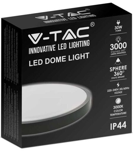 V-TAC VT-8630B-RD 30W IP44 plafonnier LED rond NOIR 360° design moderne 6500K - sku 7641