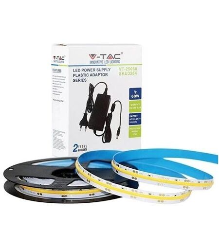 V-TAC Kit bande LED strip led COB 24V 421LEDs/m 5m blanc froid 6400K IP20 + alimentation stabilisée - SKU 2678