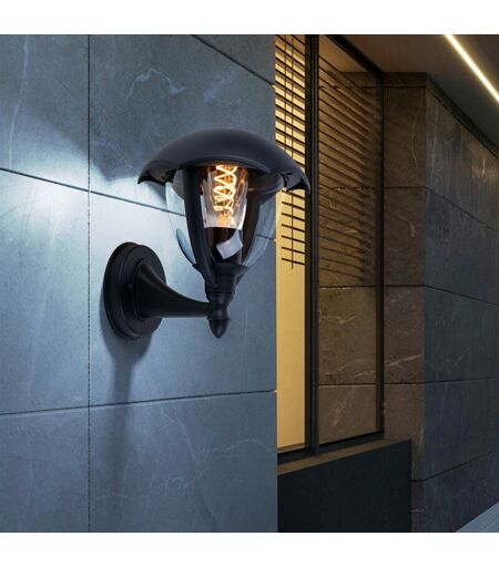 V-TAC Applique murale d'extérieur lanterne noire lampe de porte d'entrée applique extérieure verre clair, aluminium, 1x E27, LxH 20x23,8 cm