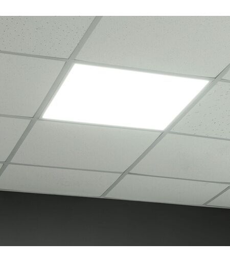 Description Le panneau LED encastrable carré (59,5 x 59,5 cm) séduit par son design moderne, son rendement lumineux élevé (4320 lm) et sa puissance de 36 watts. Avec un cadre en aluminium blanc, il est idéal pour les plafonds à grille. Prévu uniquement pour l'encastrement dans le plafond à l'intérieur (IP20). Parfait pour les bureaux, les couloirs ou les espaces de vente. L'ampoule LED est intégrée dans le luminaire. CONSEIL DE MONTAGE : Percez un trou dans le plafond - respectez les dimensions du panneau. Fixez le panneau dans le plafond (typiquement dans un plafond à grille). Détails du luminaire• Type de luminaire : Panneau LED • Cadre de la lampe : Aluminium • Abat-jour : Plastique • Forme : carré • uniquement encastré dans le plafond • couleur : blanc • Type de protection : IP20 • Longueur x largeur x hauteur en cm : 59,5 x 59,5 x 3,3• Source lumineuse : LED • Source lumineuse fixe • Puissance de l'ampoule : 36 watts • Flux lumineux : 4320 lumens • Couleur de lumière : blanc ...