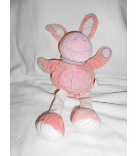 Ane Doudou Tex Baby Cheval Lapin Rose Raye Peluche Carrefour De 30 Cms + Oreilles De 7 Cms Echarpe Foulard Bandana Mauve Lilas Parme