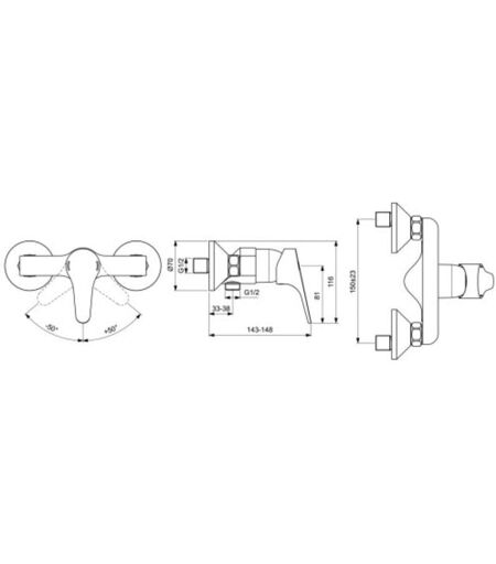 Mitigeur douche mural Ulysse de Porcher : Couleur chrome. Sortie de douche 1/2' par le dessous avec clapet anti-retour intégré. Cartouche Ø 38 mm FirmaFlow® avec limiteur de température intégré. Raccords muraux. Poignées en métal. ...